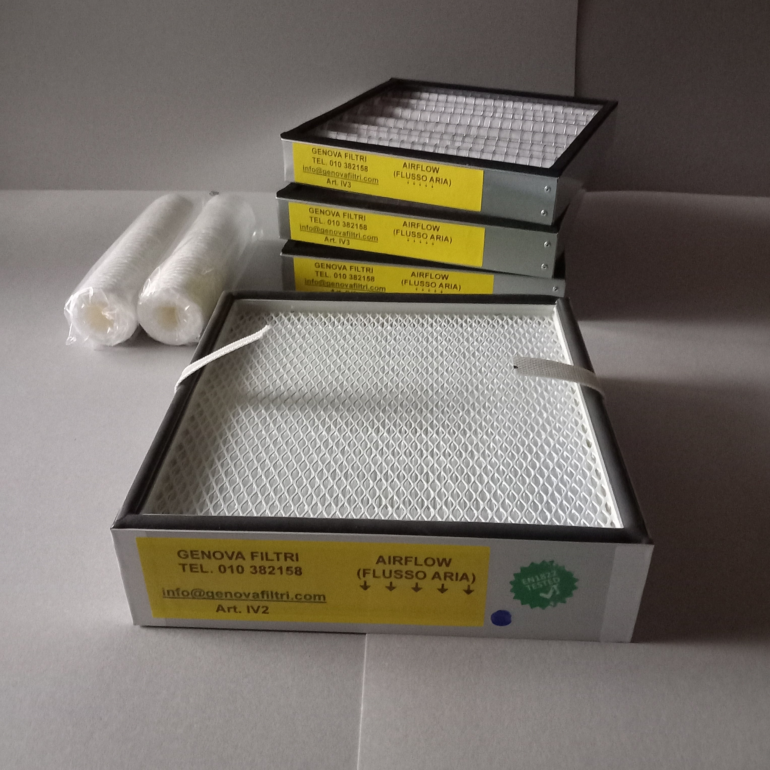 – n° 1 filtro con classe di filtrazione Hepa H13 in microfibra di vetro (ns. art. IV2 nella foto in primo piano )